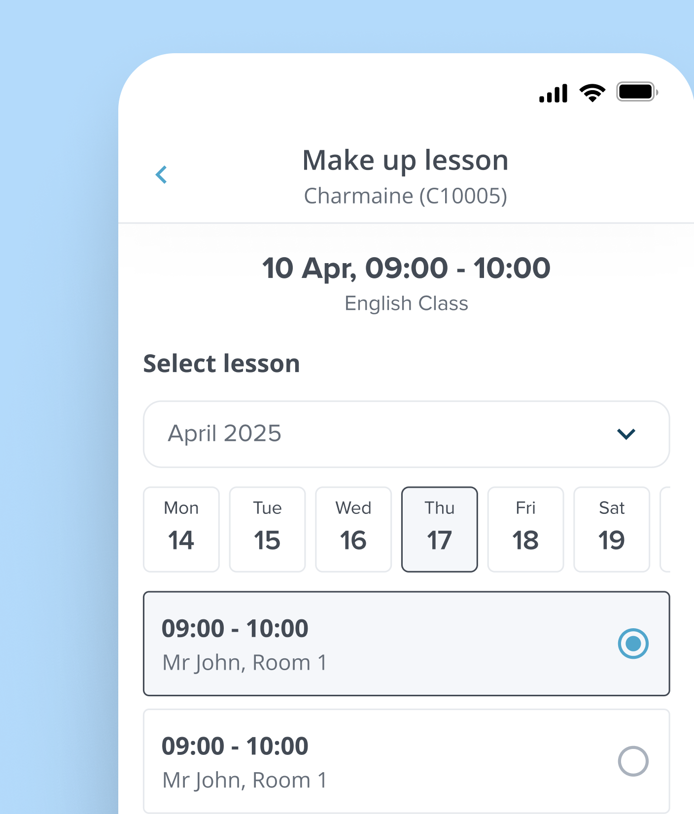 - Add a make-up session directly in the app.